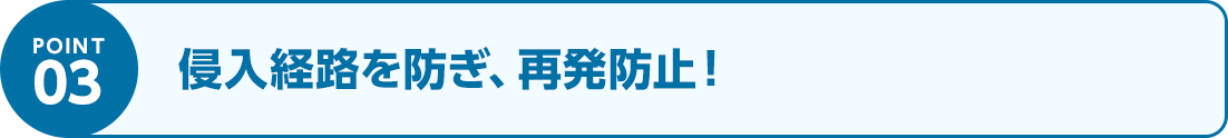 施工後は殺菌・消毒を行い、再発防止いたします。施工技術には自信がありますが、万が一再発した場合でも1週間のアフターフォローがついているので、安心してお任せください。