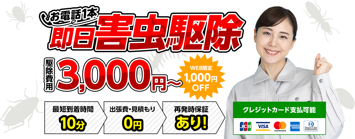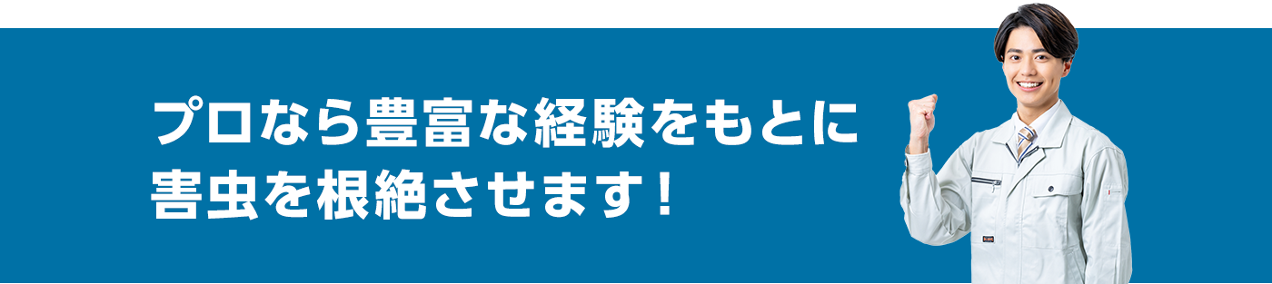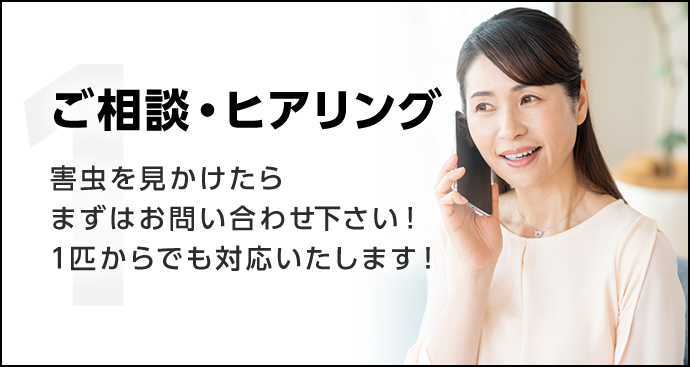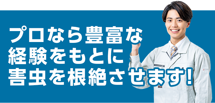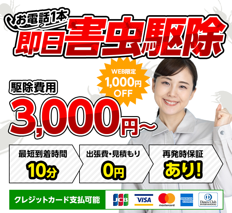 虫の種類や被害状況によって変動しますが、最低料金は3,000円~となります。まずは無料でお見積りさせていただきます。お見積り金額に追加で発生する費用はございませんのでご安心ください。お客様にご納得いただいてから作業に入ります。