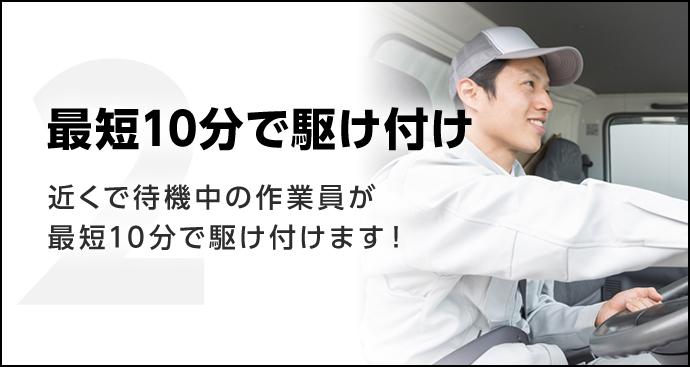 スタッフが待機しておりますのでお電話をいただいてから即駆けつけます!